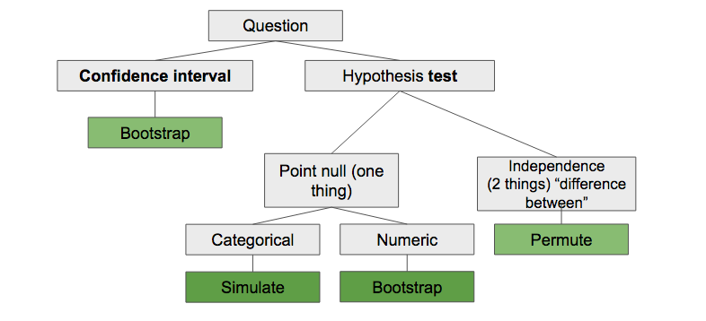 The goal of today’s homework is to practice statistical inference using simulation procedures. The data for today’s lab may be found by cloning your repository available at the class GitHub repository. Use the lecture notes, readings, and application exercises to help you complete the lab. You can also use this chart on simulation-based inference to help you determine the appropriate sampling scheme when conducting simulation-based inference.